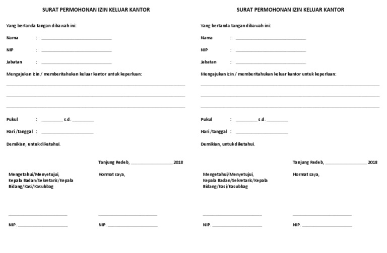 Bagi agama tertentu, terkadang dibutuhkan surat izin restu orang tua untuk menikah yang ditujukan ke kantor. Contoh surat izin tidak kerja alasan sakit. Yang terhormat, kepala personalia pt. Untuk beberapa urusan tertentu, surat ini sebaiknya dibuat beberapa hari sebelumnya. Surat permohonan izin keluar kantor.